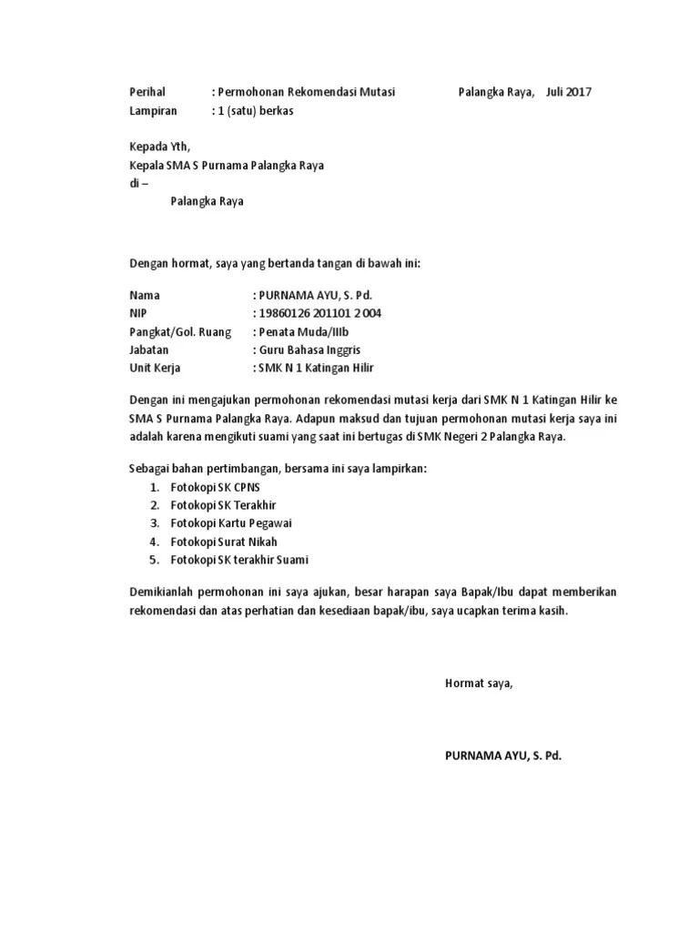 Surat Permohonan Pindah Tugas Guru Pns - Contoh Surat Permohonan Mutasi Pns Guru Antar Propinsi Contoh Surat - Surat permohonan pindah atau mutasi tugas sekolah ini dibuat oleh seorang guru pns yang ingin agar lokasi penempatan dia bertugas bisa dipindahkan ke tempat .. Contoh surat permohonan pindah pns . Dengan ini mengajukan kepada bapak permohonan pindah tugas dari. Menerbitkan surat tugas mutasi pindah pns ybs. Membuat surat permohonan rekomendasi pindah tugas ke kepala daerah (bupati/walikota cq. Surat permohonan pindah atau mutasi tugas sekolah ini dibuat oleh seorang guru pns yang ingin agar lokasi penempatan dia bertugas bisa dipindahkan ke tempat .